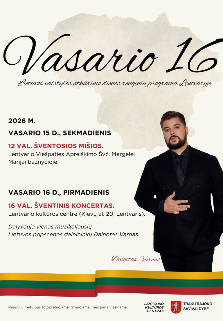 Vasario 16 d. 16 val. Šventinis Dainoto Varno koncertas, skirtas Lietuvos valstybės atkūrimo dienai, Lentvario kultūros centre. Renginys nemokamas.
